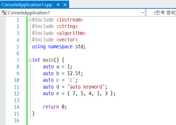 auto 키워드인데, C++11 이후에 추가되었다고 합니다.