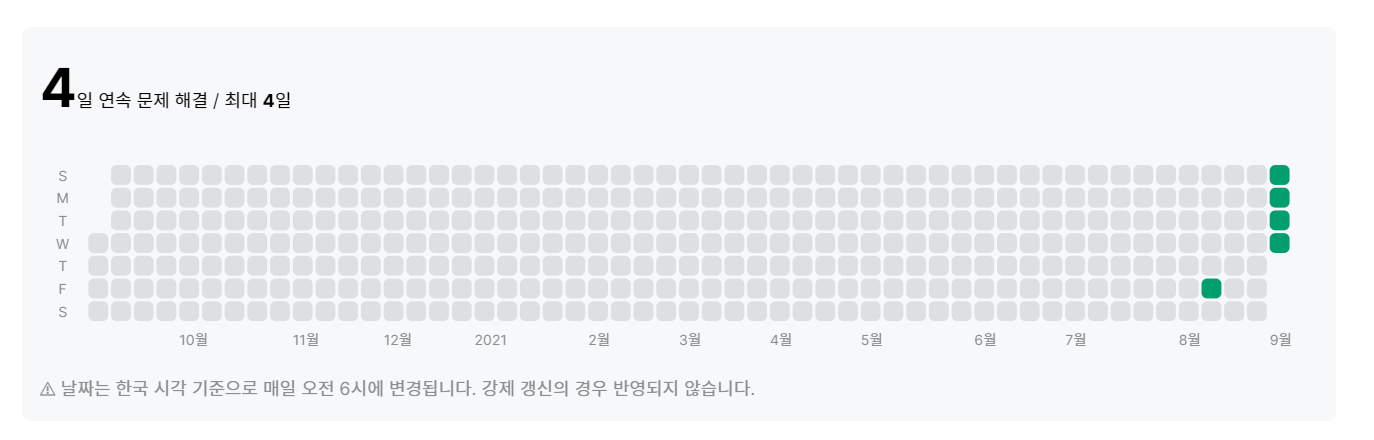 제가 이전에 문제를 많이 풀었던 날은 따로 표시되지 않는 것으로 보아, 기능이 추가된 이후부터 반영되나 봅니다.