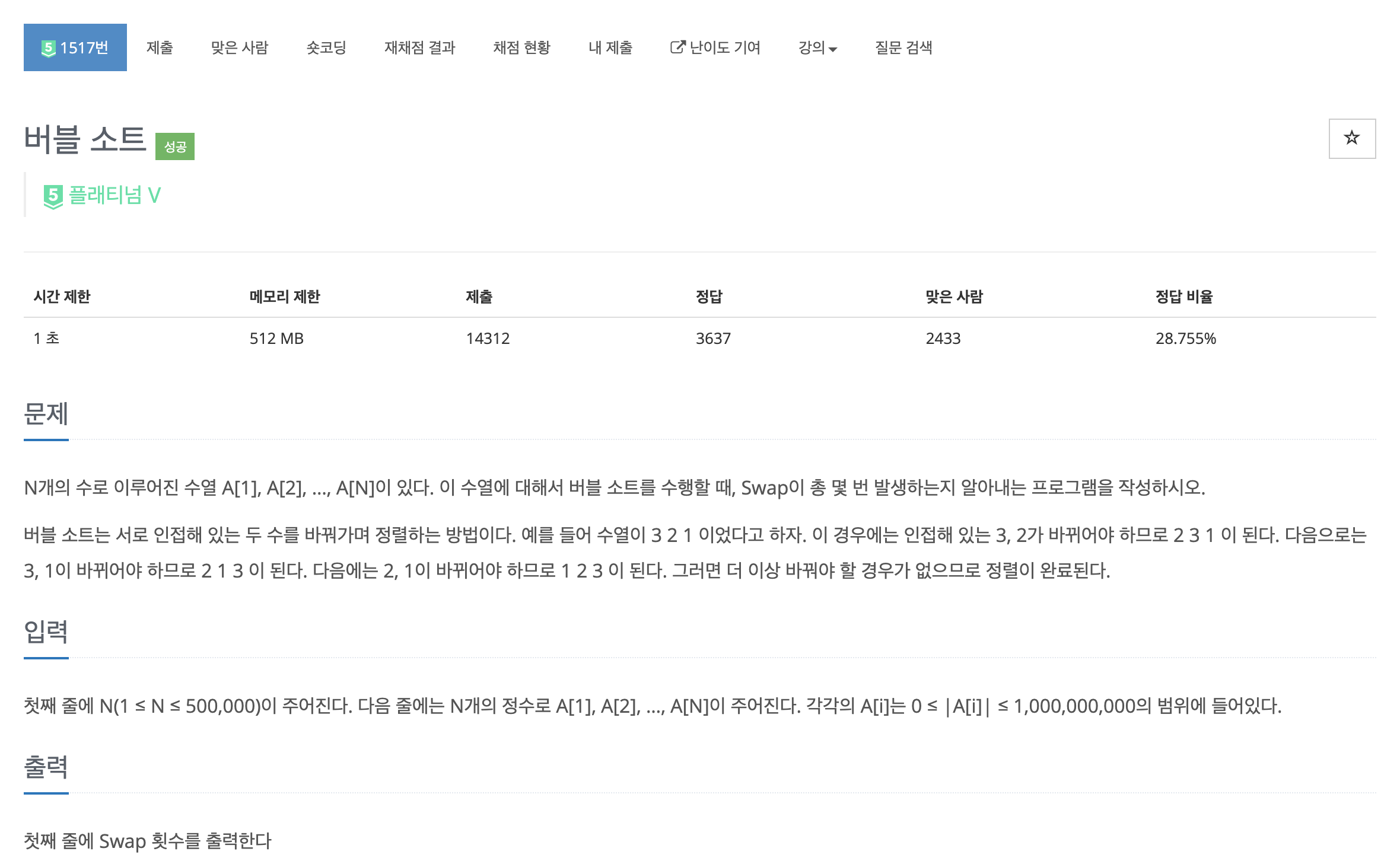그렇지 않은 경우, swap이 일어나는 횟수를 세어 answer에 담습니다. arr2에 뒤쪽의 값을 기록하고 j를 하나 증가시킵니다.