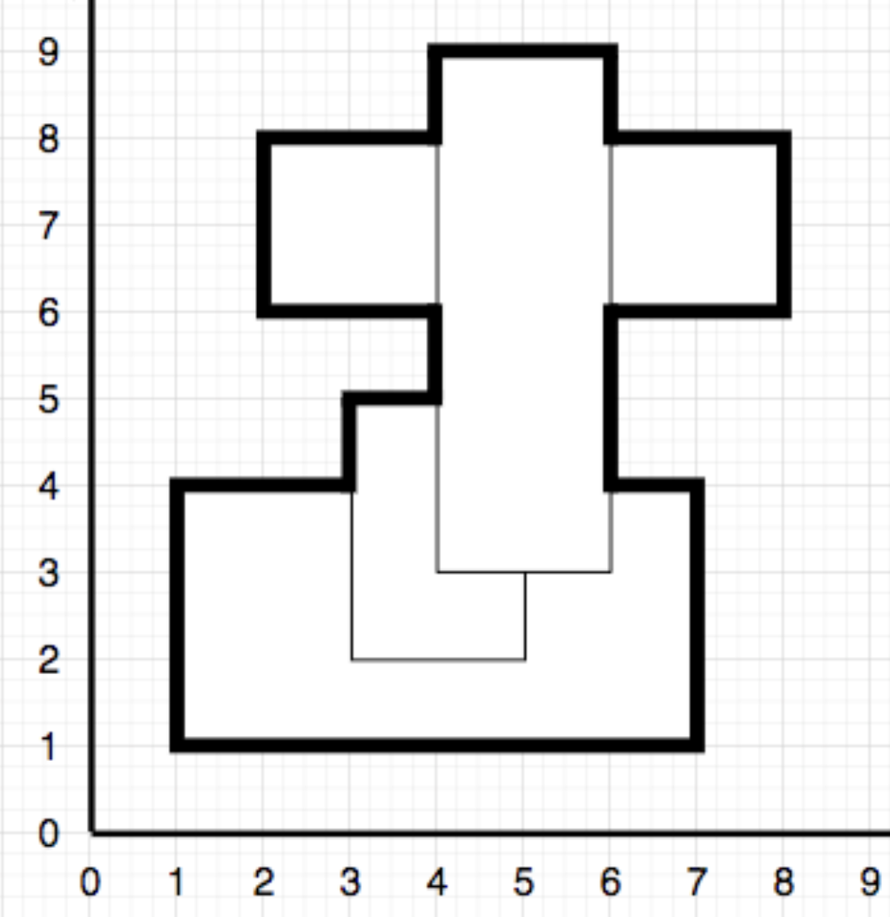 왼쪽 측면에 보시면 x좌표 3~4, y좌표 5~6 부분에 凹 모양으로 움푹 들어간 곳이 보입니다.