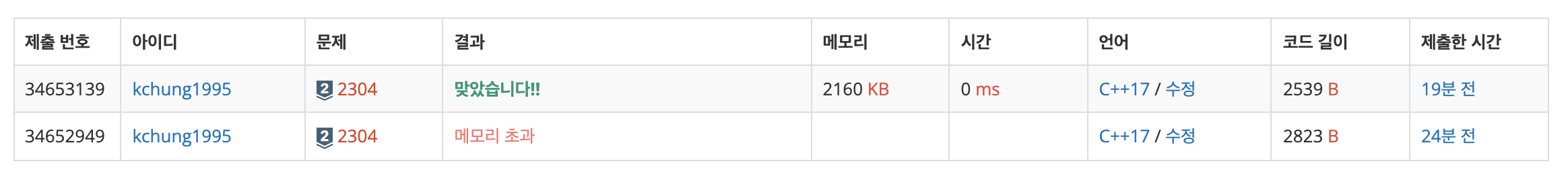 두 번째 제출에 정답 판정을 받았네요.