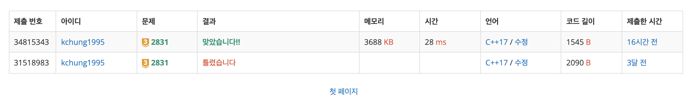 이 문제를 왜 3개월 전에는 그렇게 고민하고 헤맸는지...