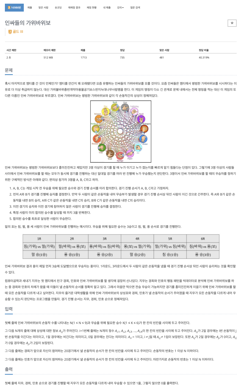 - 세 사람 (지우, 경희, 민호)이 인싸들의 가위바위보를 한다. 여기서 우선순위가 정해져 있는데, 지우 < 경희 < 민호 순이다.