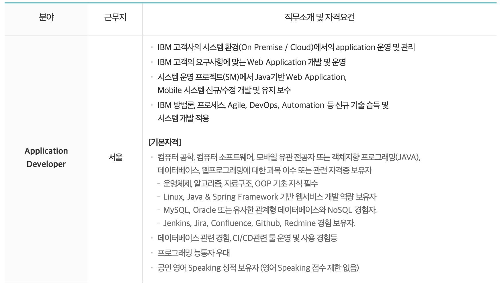 구체적으로는 두 개의 직무가 있었습니다: Application Developer, IT Consultant (focused on cloud).