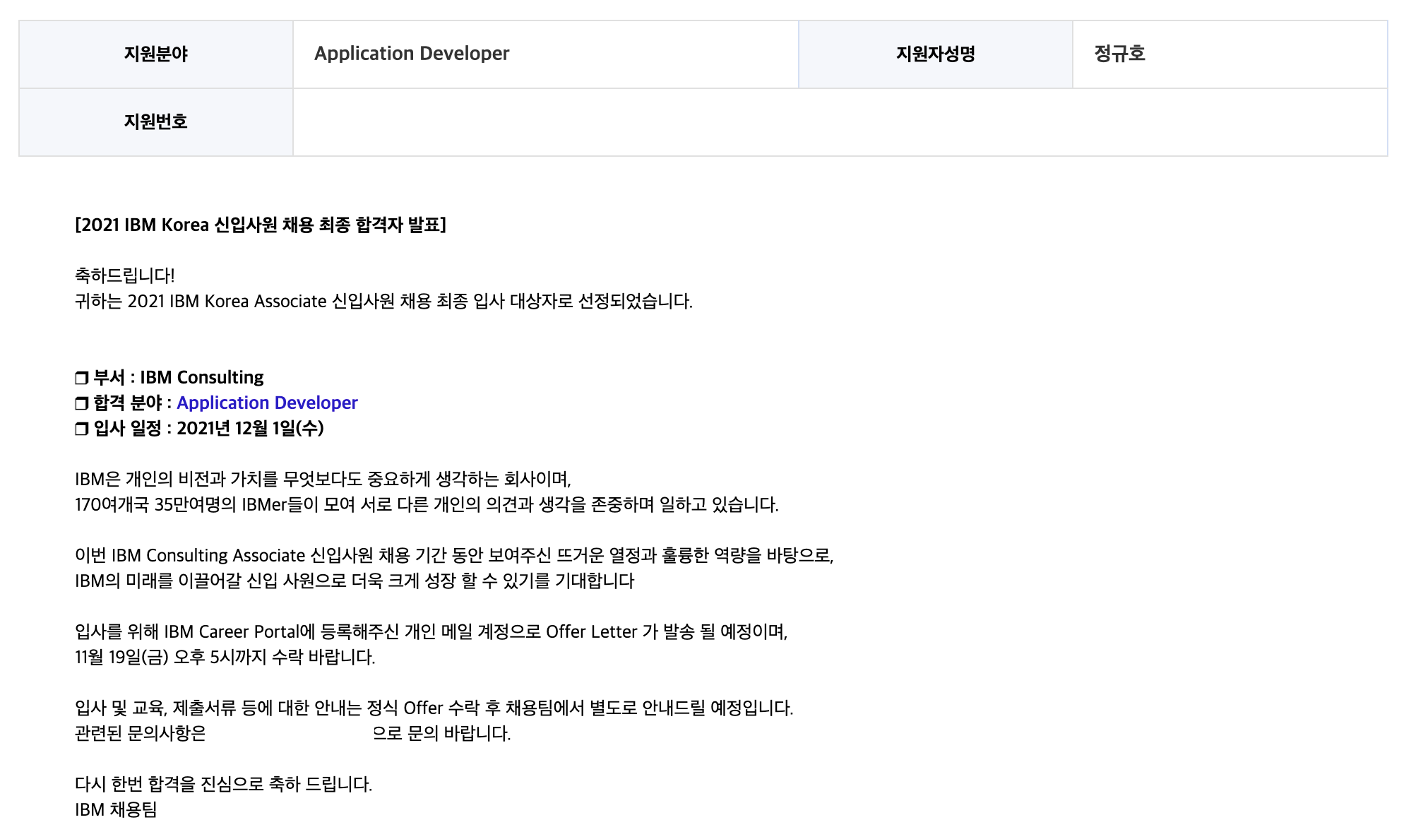 이후에 IBM의 IBM Consulting 부서 내의 Application Developer 직무에 지원하시는 분들이 궁금한 점이 있으시다면, 이 글의 댓글란에 질문을 달아 주세요.