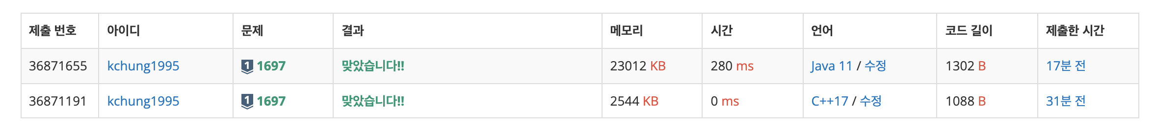 따라서 탐색 알고리즘을 이용하면 쉽게 풀 수 있으며, 저는 BFS를 이용하였습니다.