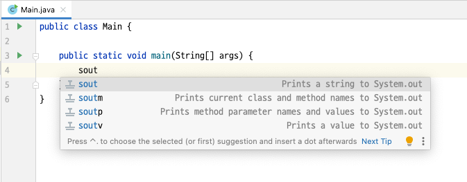 | sout | System.out.println() |