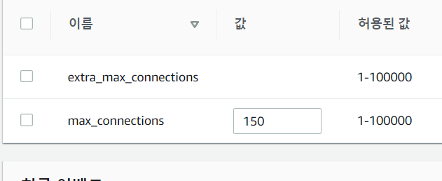 이 두 항목은 MariaDB에서 RDS 파라미터 그룹으로는 변경이 안 된다고 한다.