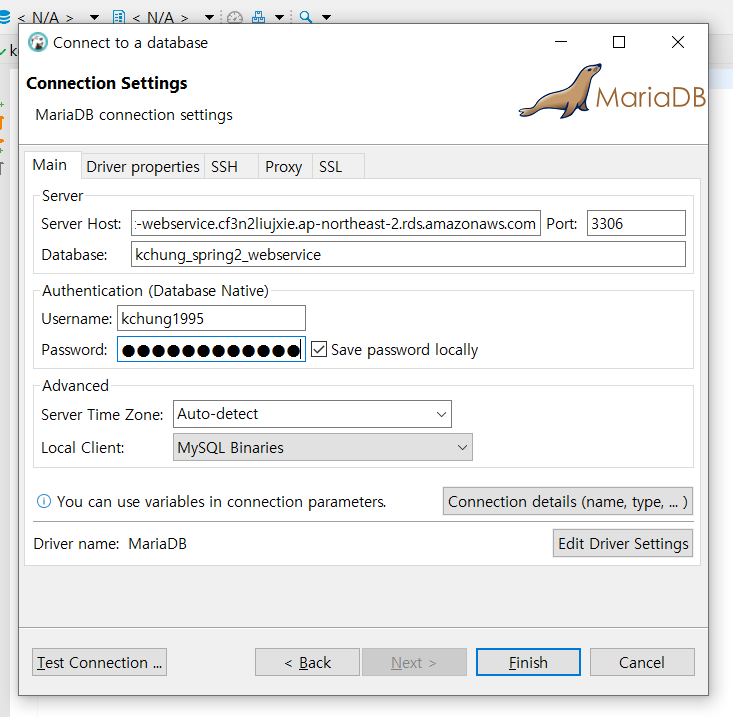 했던 과정을 MariaDB로 다시 진행하였다.