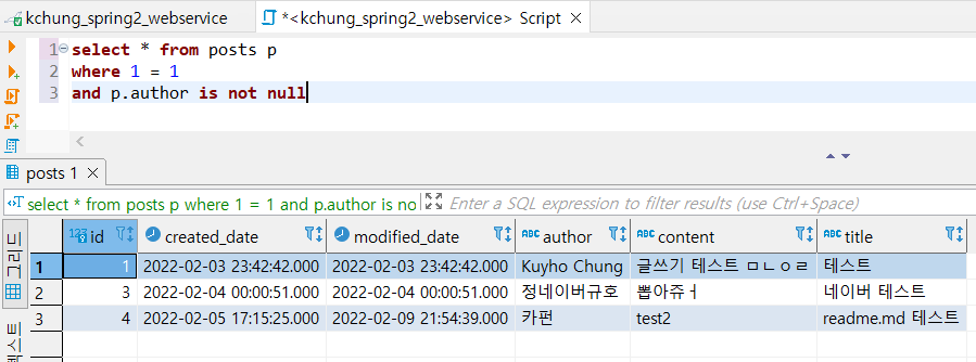 where 1 = 1 이라는 내용이 없다면, 아래와 같이 작성하게 됩니다.