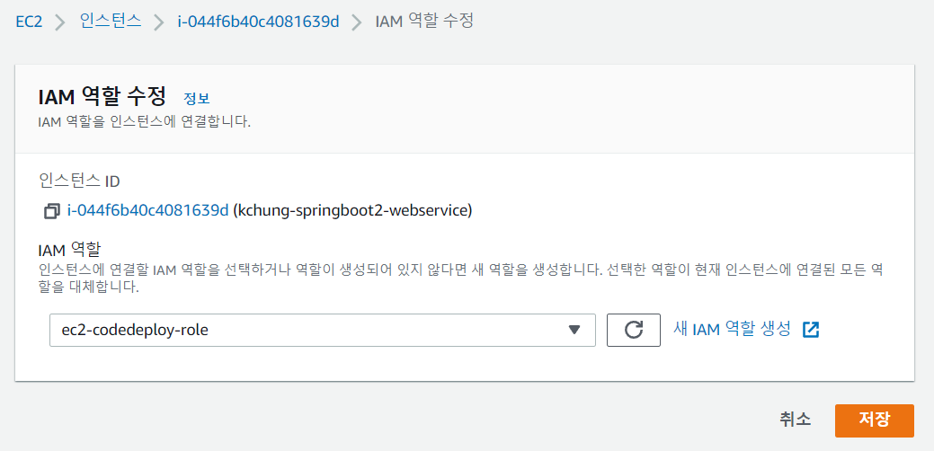 CodeDeploy (AWS의 배포 시스템)을 이용하기 전에, EC2가 CodeDeploy를 연동받을 수 있도록 설정해야 한다.