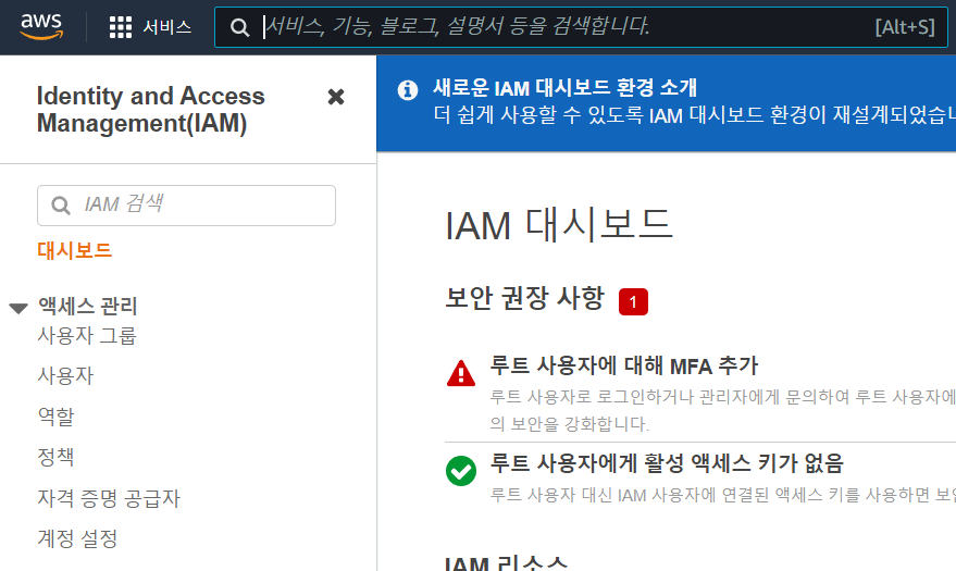 사용자는 AWS 바깥에서 접근하는 권한을 의미한다. 로컬 PC, 외부 서버 등이 존재한다.