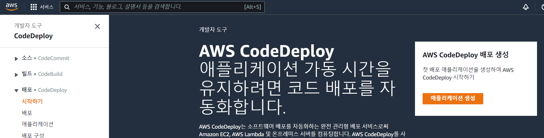 AWS 콘솔에서 CodeDeploy를 검색하고, '애플리케이션 생성' 을 누릅니다.