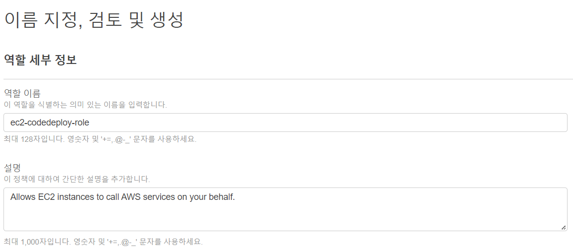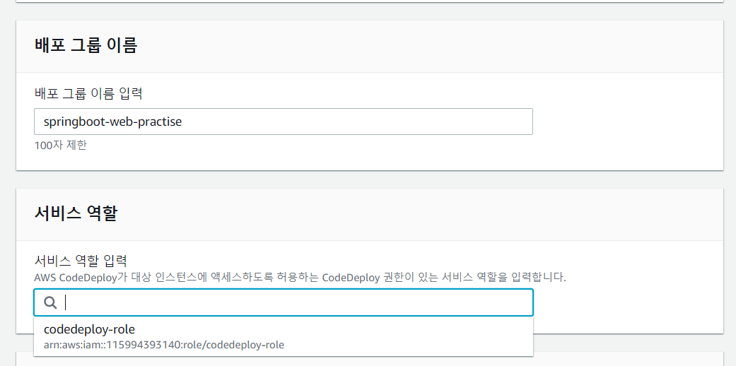 CodeDeploy는 권한이 하나 뿐이라서 아까와는 다르게 바로바로 진행할 수 있습니다.