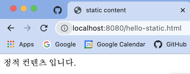 localhost:8080/hello.html 을 통해 해당 파일에 접근할 수 있습니다.