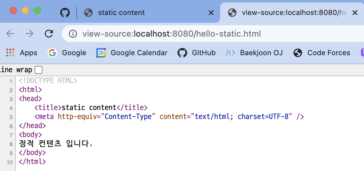 - Controller에 등록되지 않은 요청이므로, resources/hello-static.html을 찾아봄