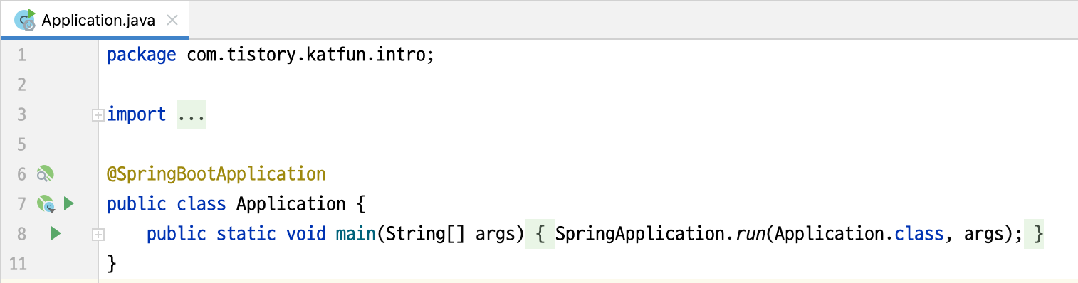 위에 package com.tistory.katfun.intro; 라는 코드가 보이시나요?