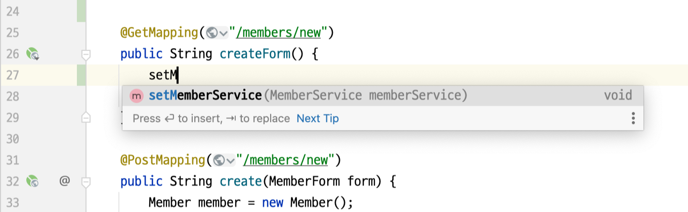 위 코드에서는 개발 과정에서 다른 곳에서 setMemberService를 호출할 수 있게 됩니다.