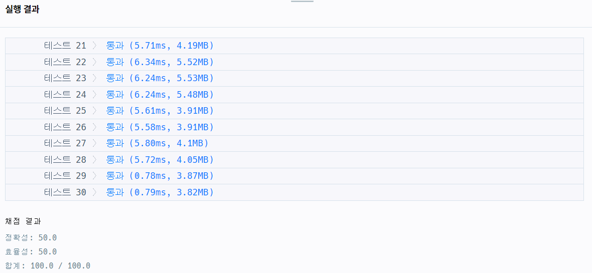 이 문제는 정확성 50, 효율성 50점이 각각 주어지는 문제였습니다.