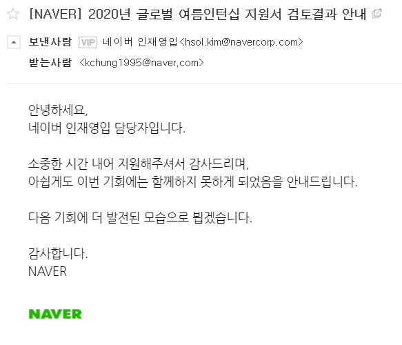 지원: 네이버 글로벌 여름인턴십 (정규직 전환형)