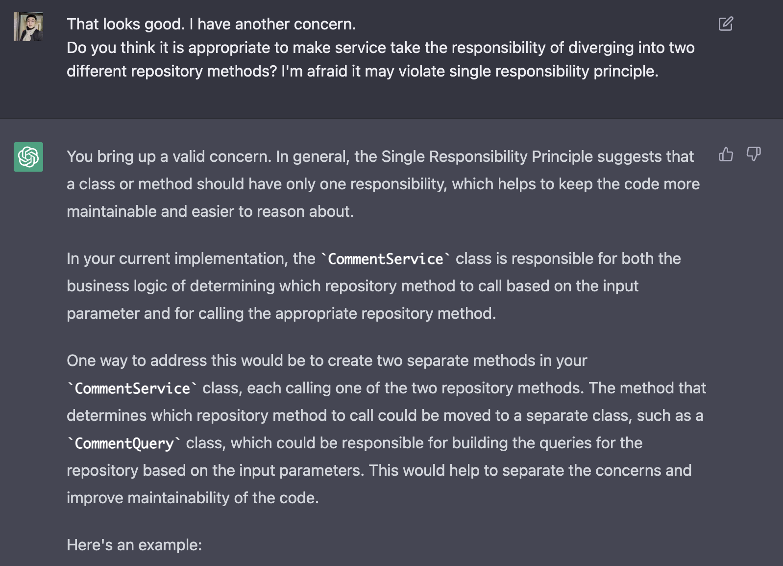 - 내 코드가 단일 책임 원칙을 위반한다고 생각한다. 이 부분에 대해 어떻게 생각하는가?