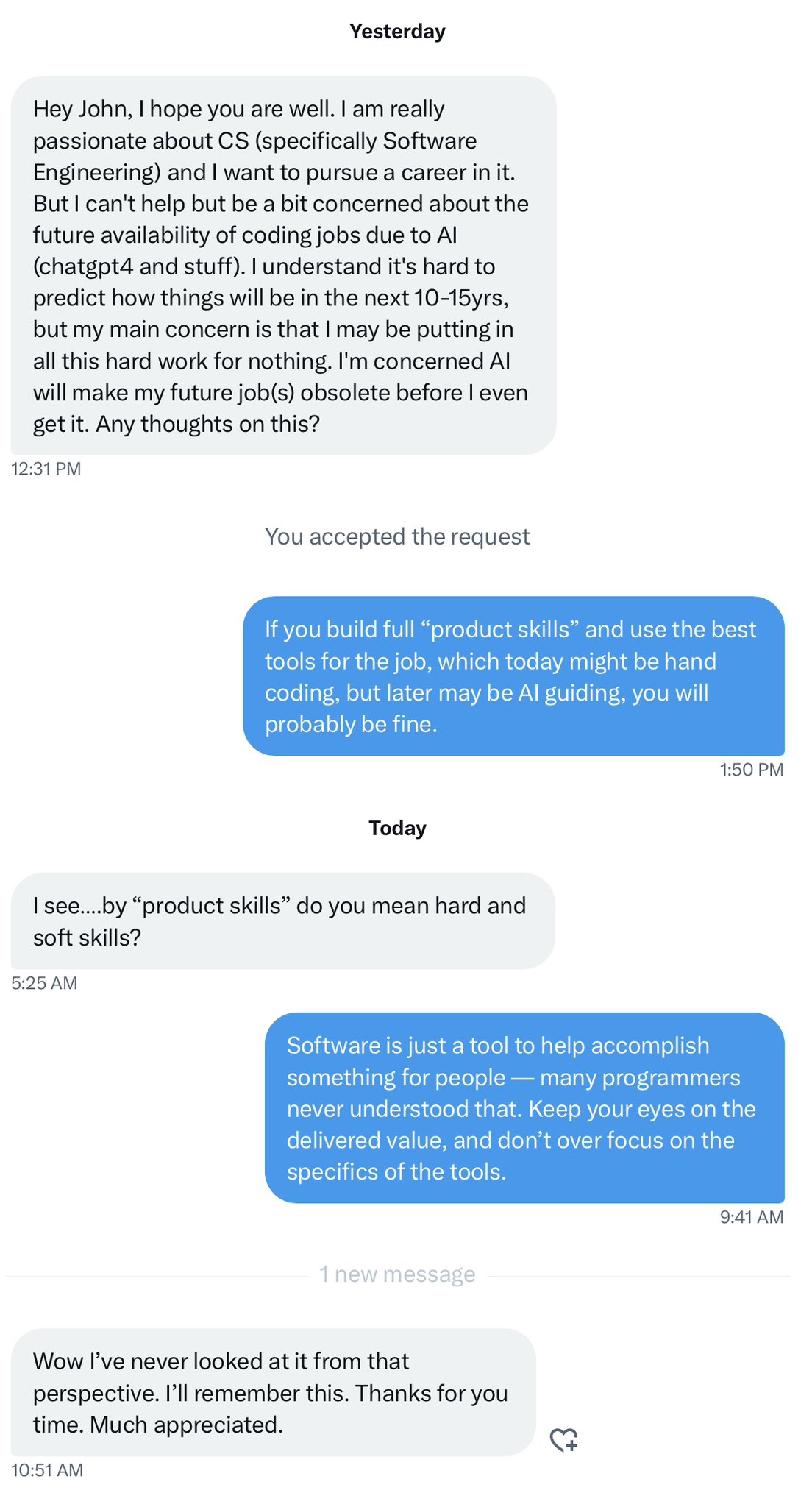엔지니어는 기술을 사용자에게 전달하는 경험의 질을 높이기 위해 고민하고 또 고민하는 직업이다. 흔한 말이지만 GPT를 포함한 AI 역시 하나의 도구 (또는 수단)일 뿐이다. 엔지니어는 수단을 사용하되, 매몰되지 않아야 한다.