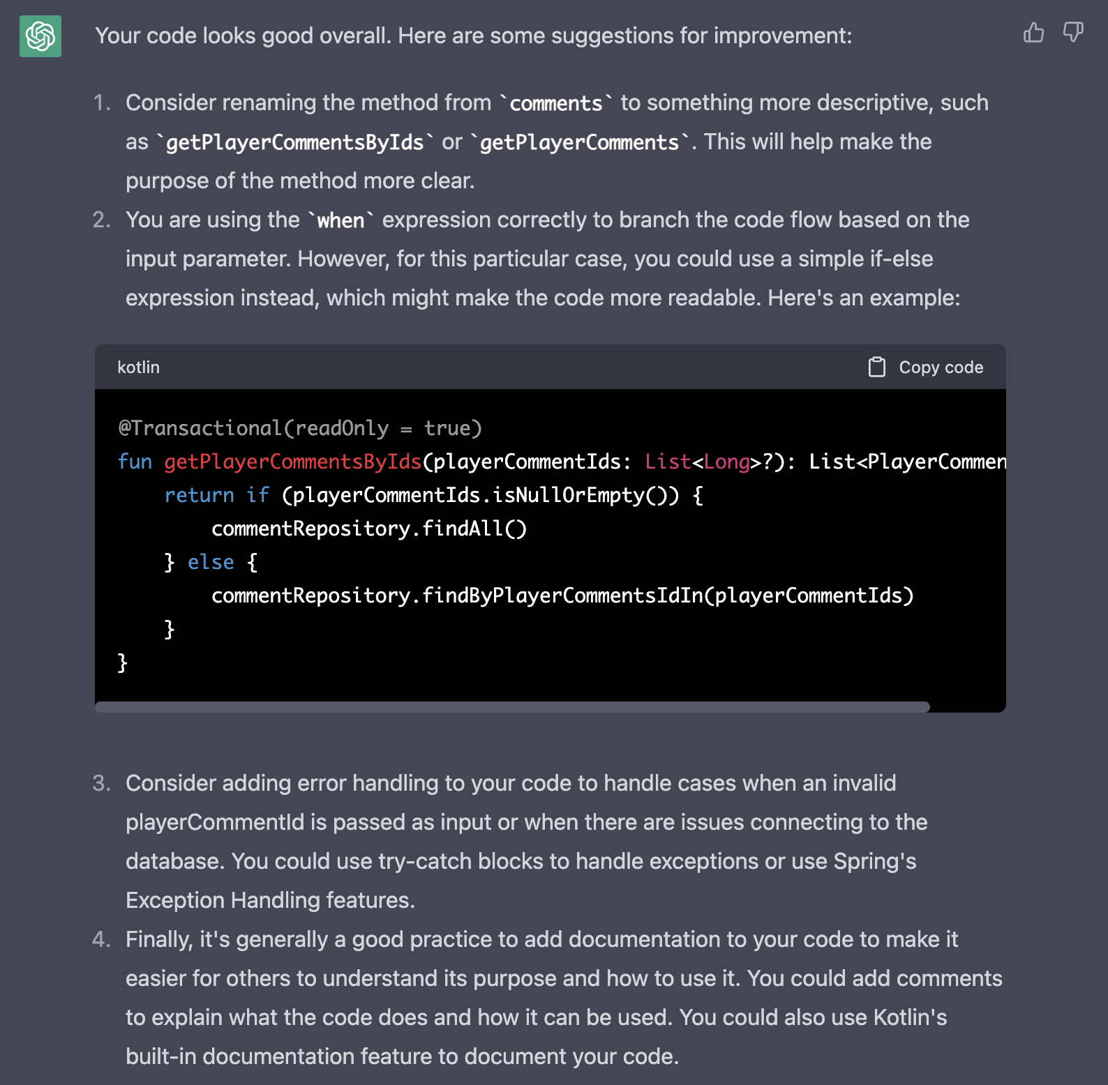 - Spring / Kotlin을 이용해서 코드를 작성해 달라.