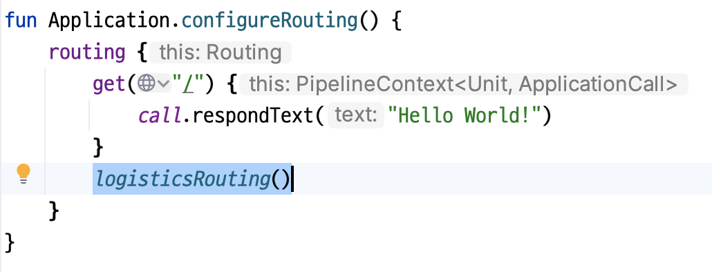 여기서부터가 ktor 스타일의 코드라고 할 수 있습니다.