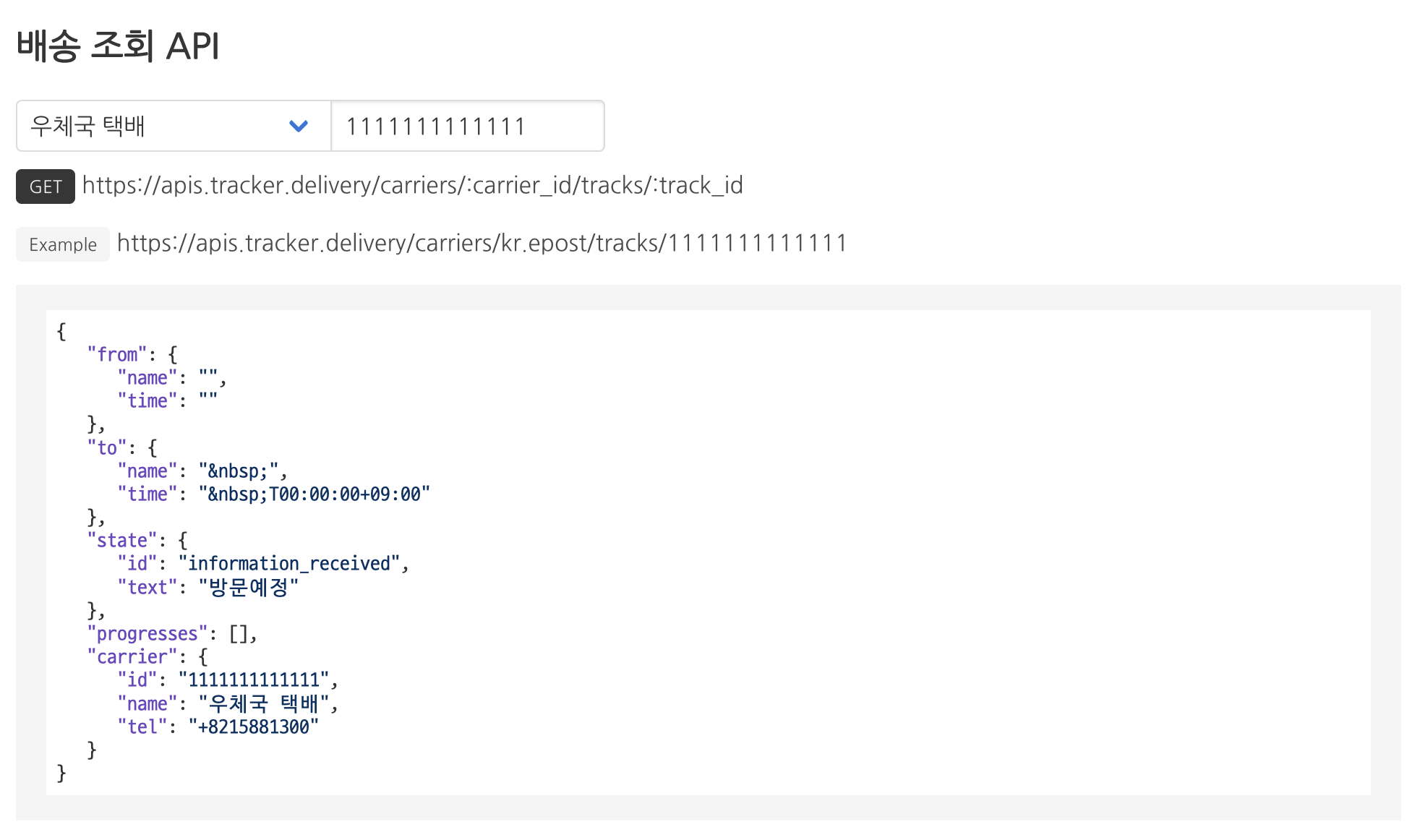 스마트택배 API는 무료 플랜이 있지만 어느 정도 이상은 유료이고, 응답을 xml 형식으로 주고 있어서(...) 손이 안 가게 되더라구요.
