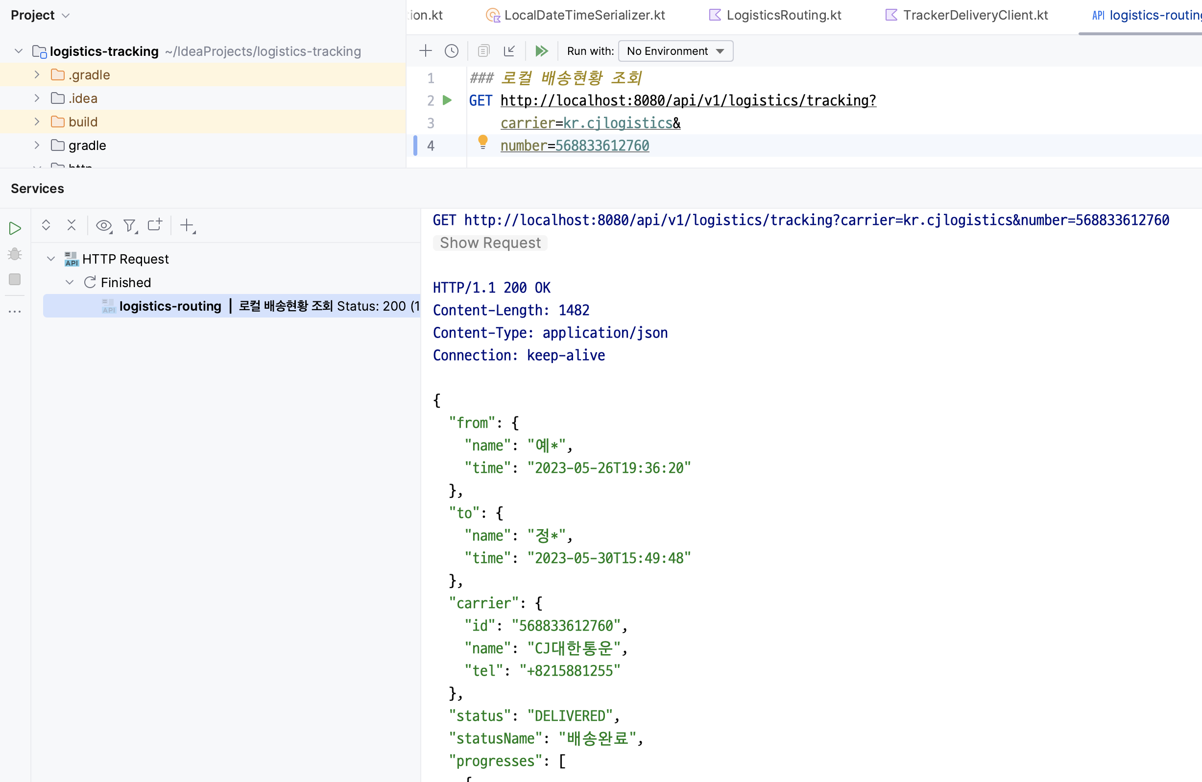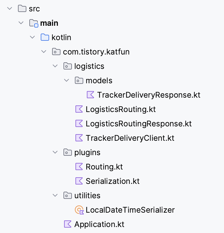 logistics 패키지를 만들고, 이 안에 Routing, RoutingResponse, Client, models/TrackerDeliveryResponse를 각각 만들었습니다.