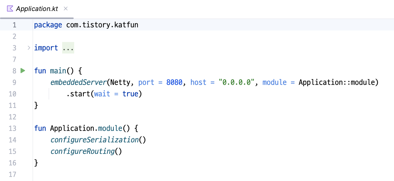 여기서부터가 ktor 스타일의 코드라고 할 수 있습니다.