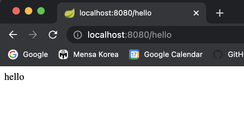 웹 브라우저를 열어 localhost:8080/hello 를 입력해보자.