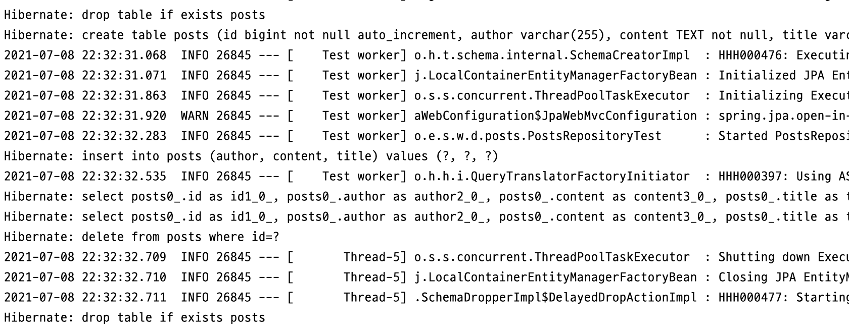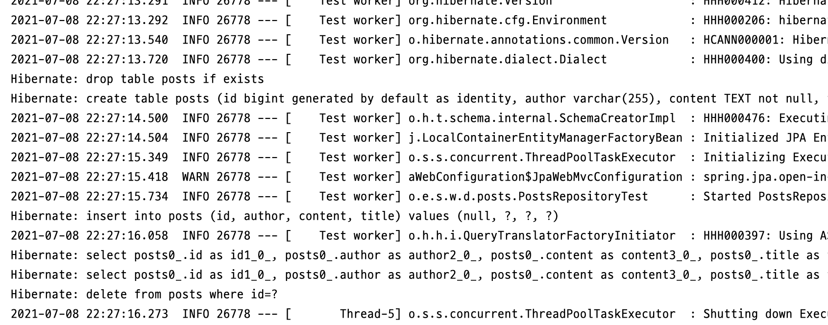 PostsRepositoryTest 클라스에 테스트 메소드를 하나 더 추가하겠다.
