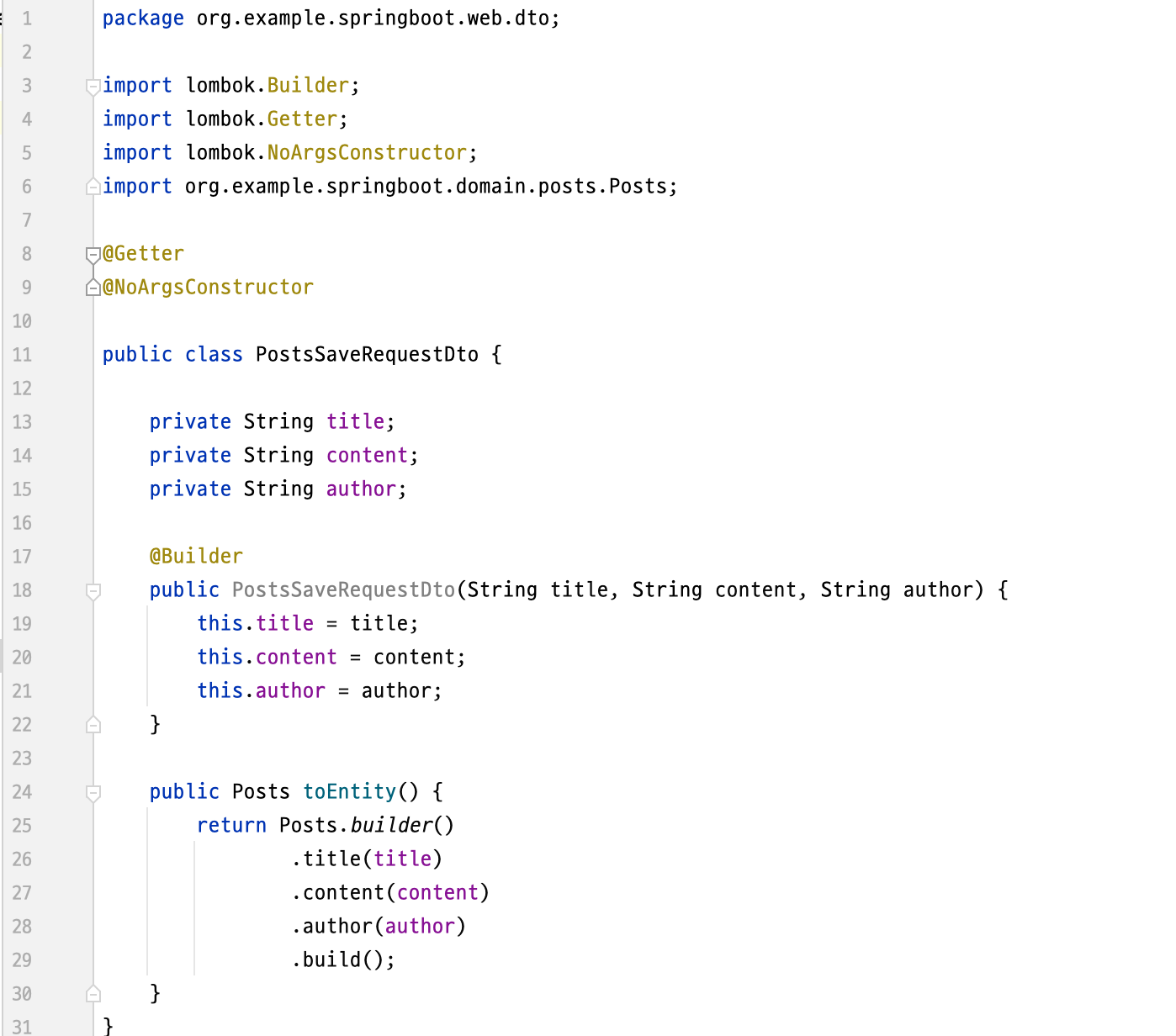 앞서 작성한 Entity 클라스와 매우 유사한 형태이다.